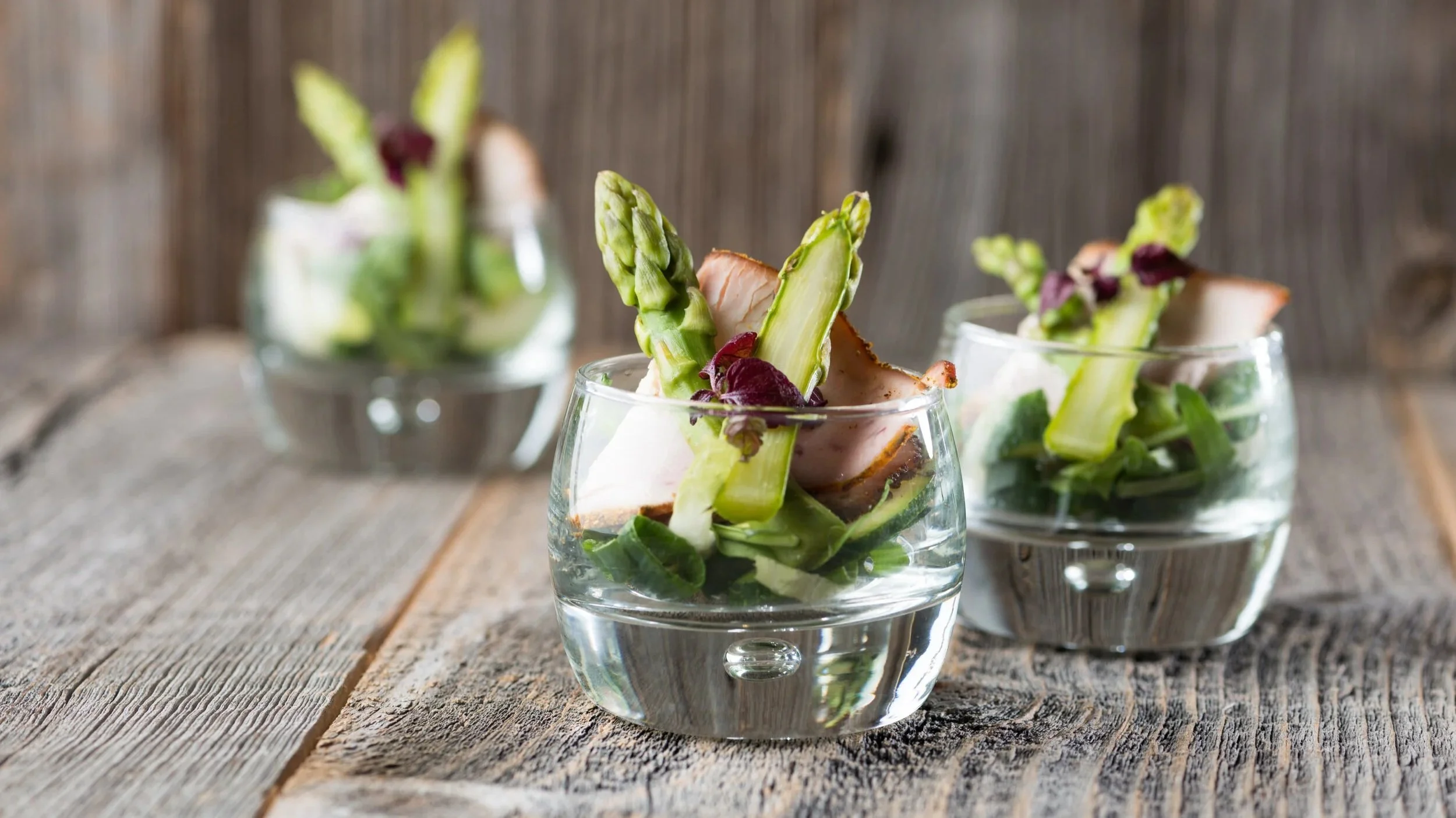 Mini-brochette with prosciutto, bocconcini, mint, honey